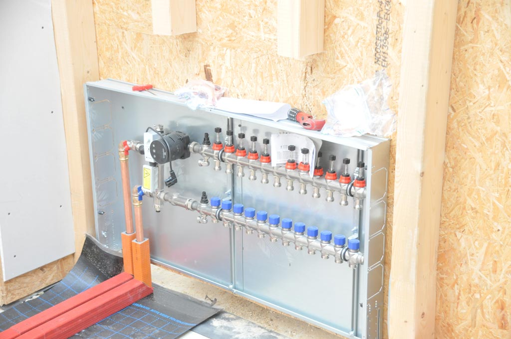 Die Verteiler für die Fußbodenheizung sind gesetzt. Mehr Bilder dazu in unserer Fotogalerie.