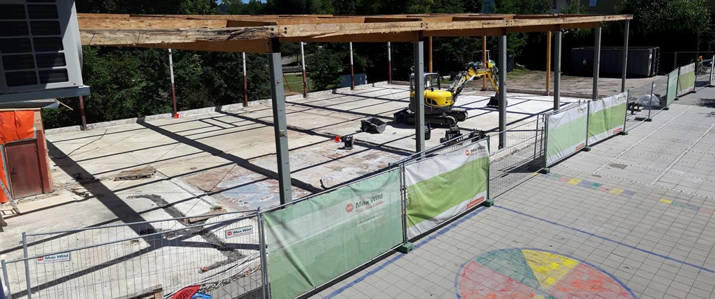 Leider sind die Abrissarbeiten nicht wie geplant in den Ferien abgeschlossen worden. Aber nun ist der Abriss geschafft und die nächste Bauphase kann beginnen. Mehr Bilder dazu in unserer Fotogalerie.